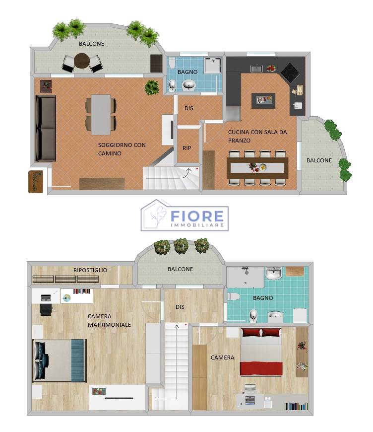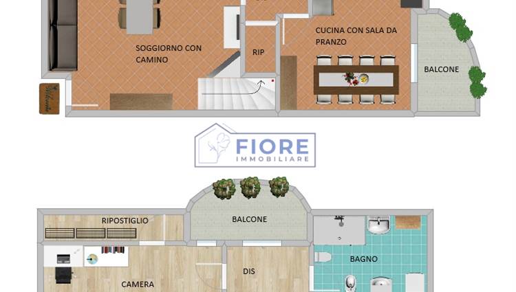 L’ingresso si apre su un ampio soggiorno molto luminoso, impreziosito da camino e accesso al balcone, perfetto per momenti di relax. La zona cucina, ben organizzata, è dotata di forno per pizze, ideale per gli amanti della cucina e della convivialità. Completa il piano una sala da pranzo accogliente, un bagno con doccia e un pratico ripostiglio/sottoscala.
