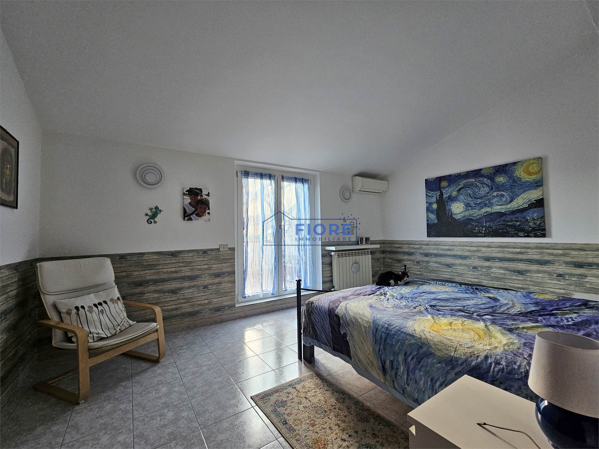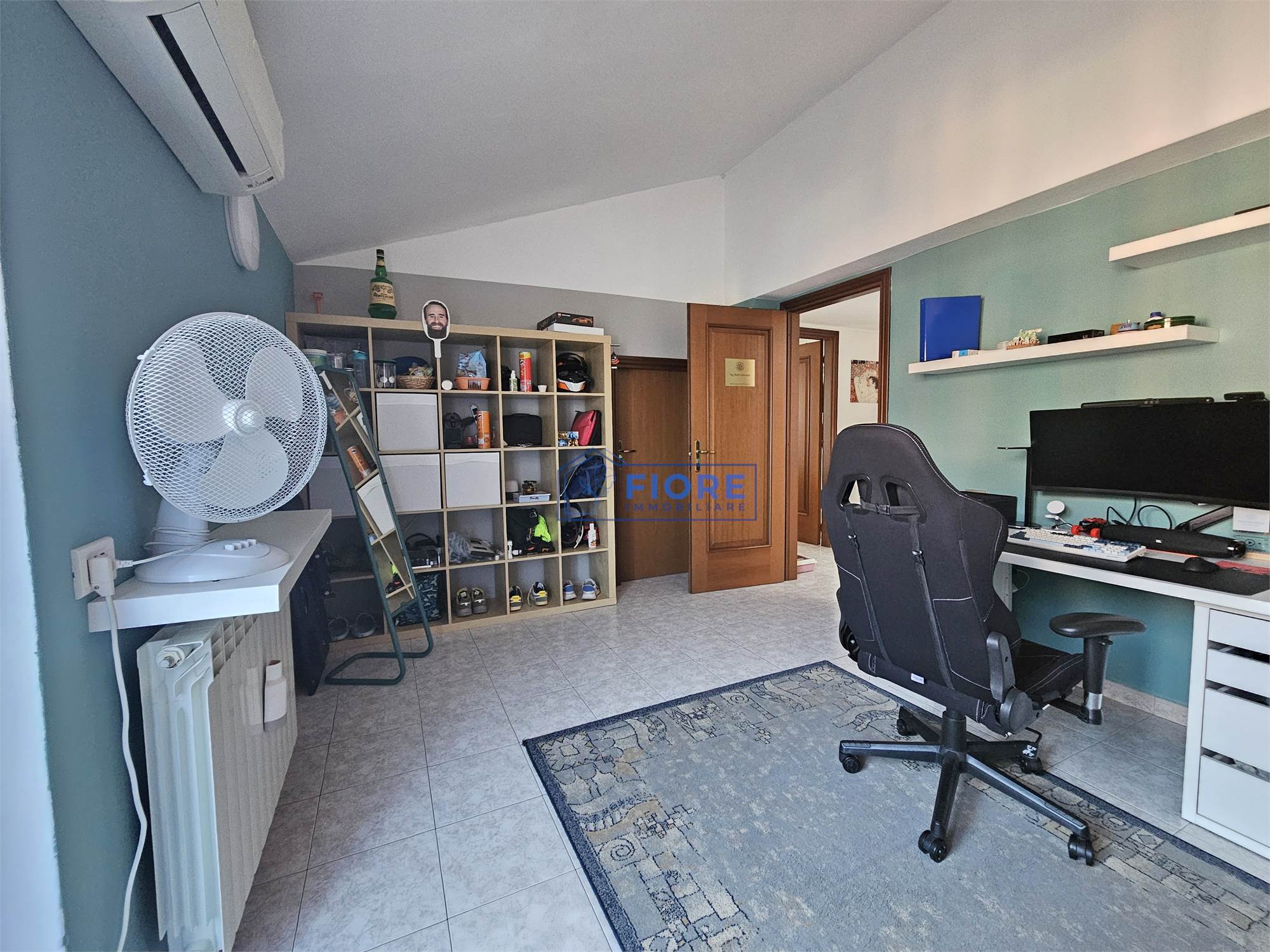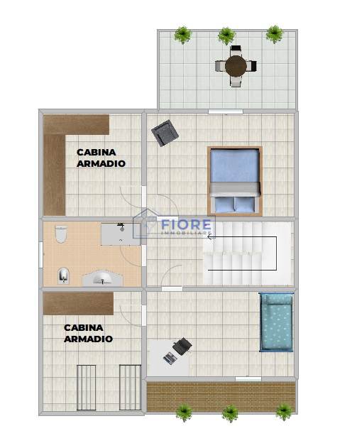 Al piano superiore troviamo una spaziosa camera matrimoniale con cabina armadio e terrazzo, una seconda camera con cabina armadio e balcone, oltre a un bagno con doccia.