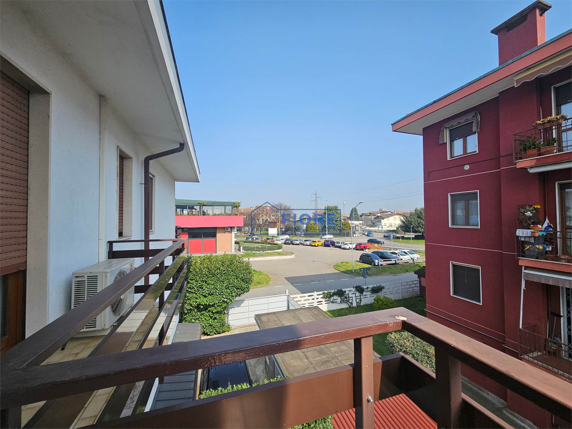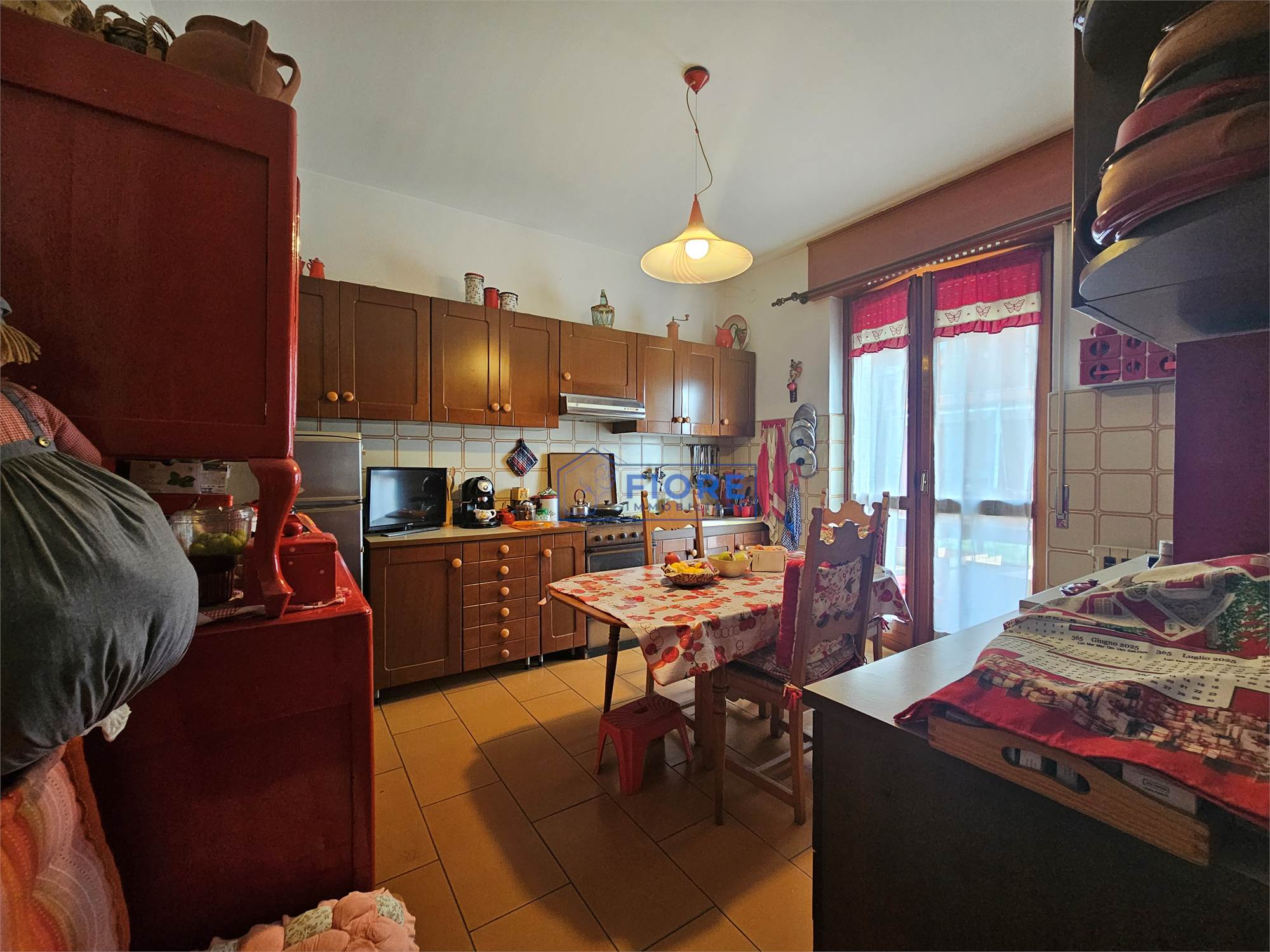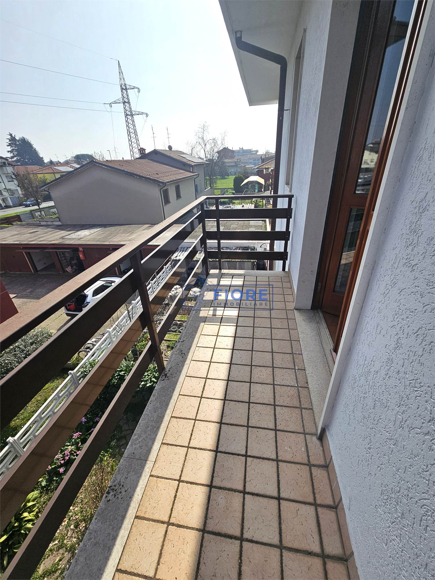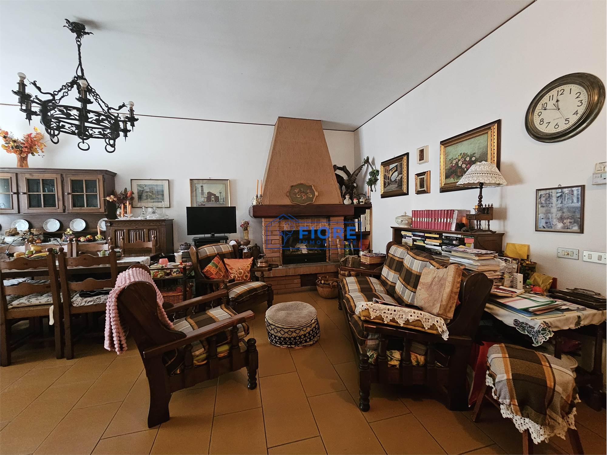 Piano primo: luminoso soggiorno con camino e balcone, cucina abitabile con balcone e bagno.