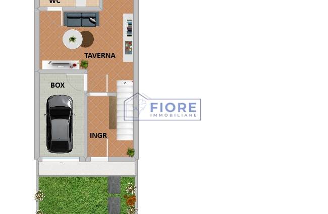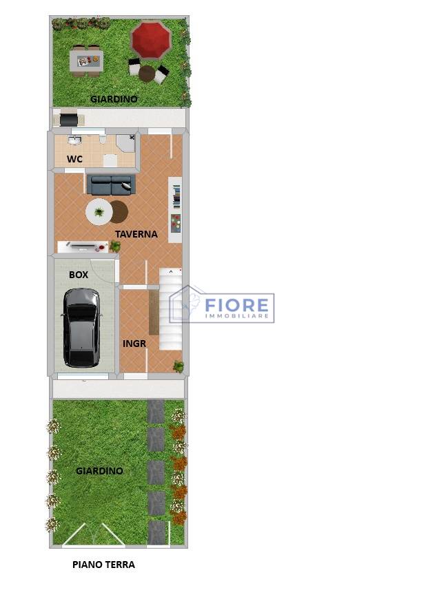 Piano terra: ingresso, accogliente locale taverna, lavanderia, box e giardino privato, perfetto per momenti di relax all’aperto.
