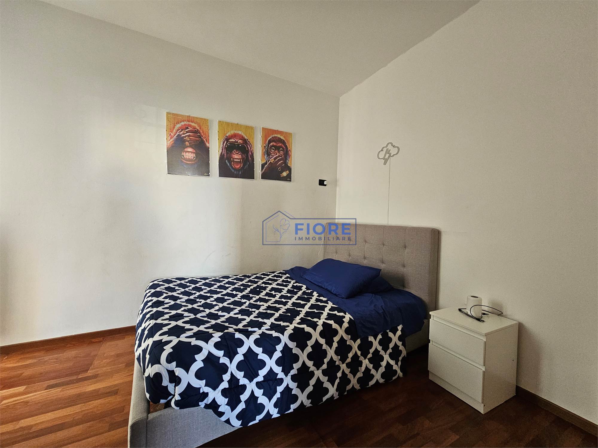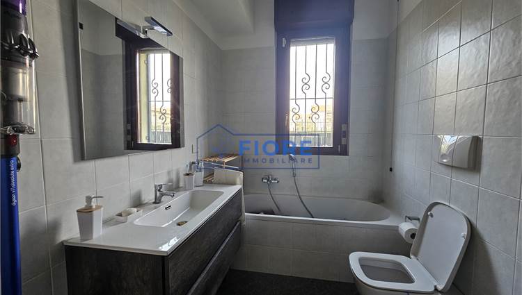 L’ingresso si apre su un luminoso soggiorno, affiancato da una cucina abitabile. La zona notte comprende due camere da letto e doppi servizi.