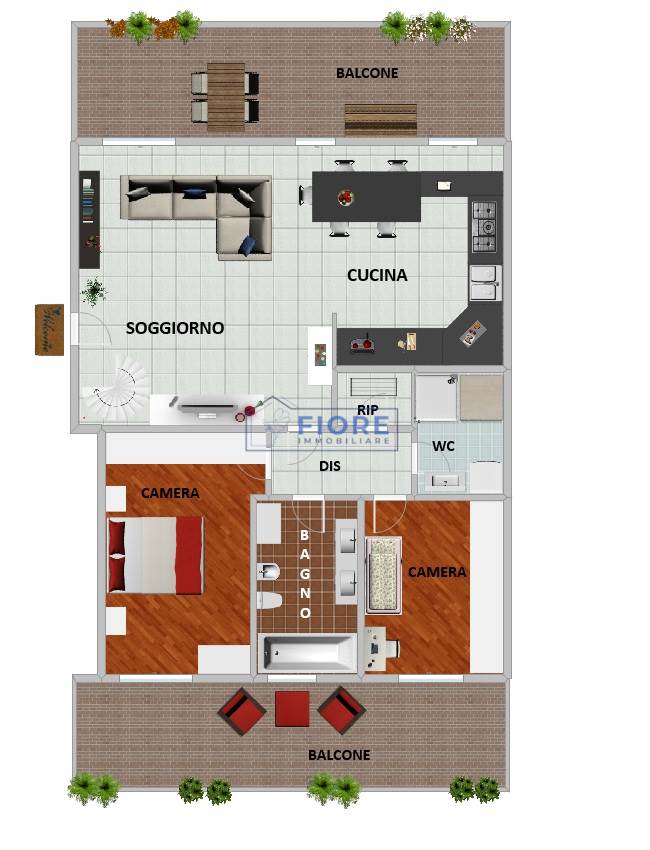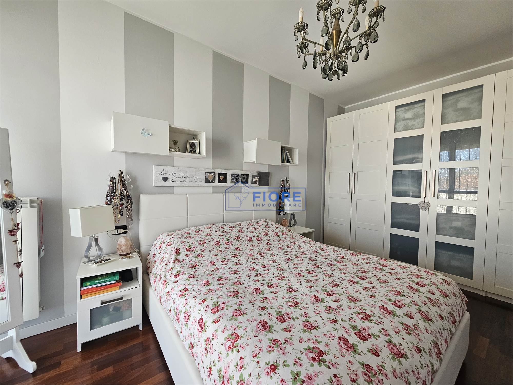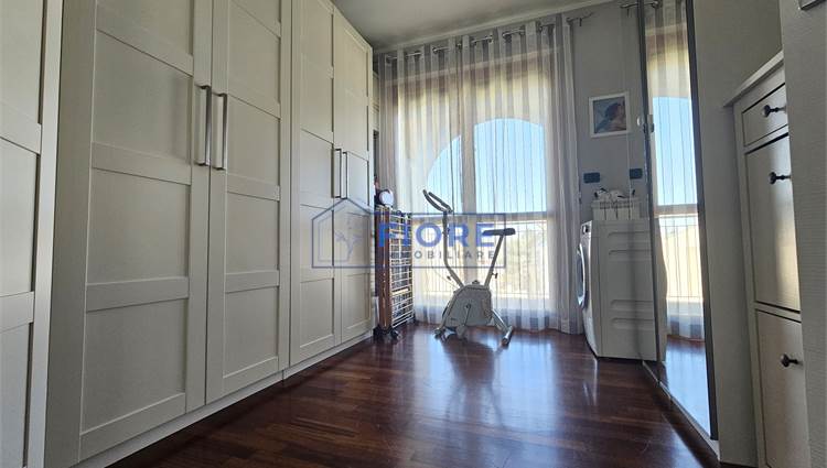 La zona notte ospita una spaziosa camera matrimoniale, una cameretta con accesso al secondo balcone e un pratico disimpegno che distribuisce gli ambienti con armonia.