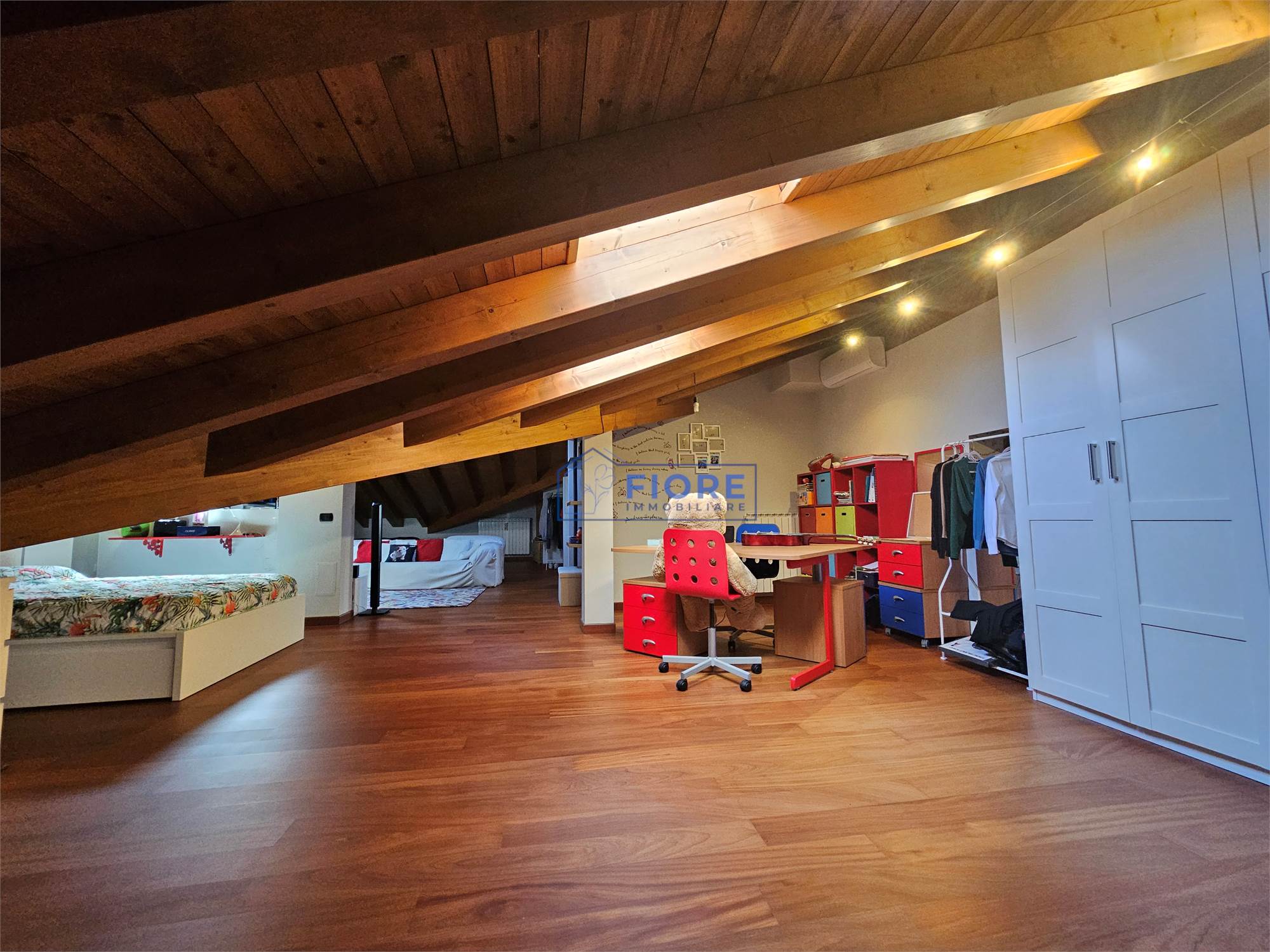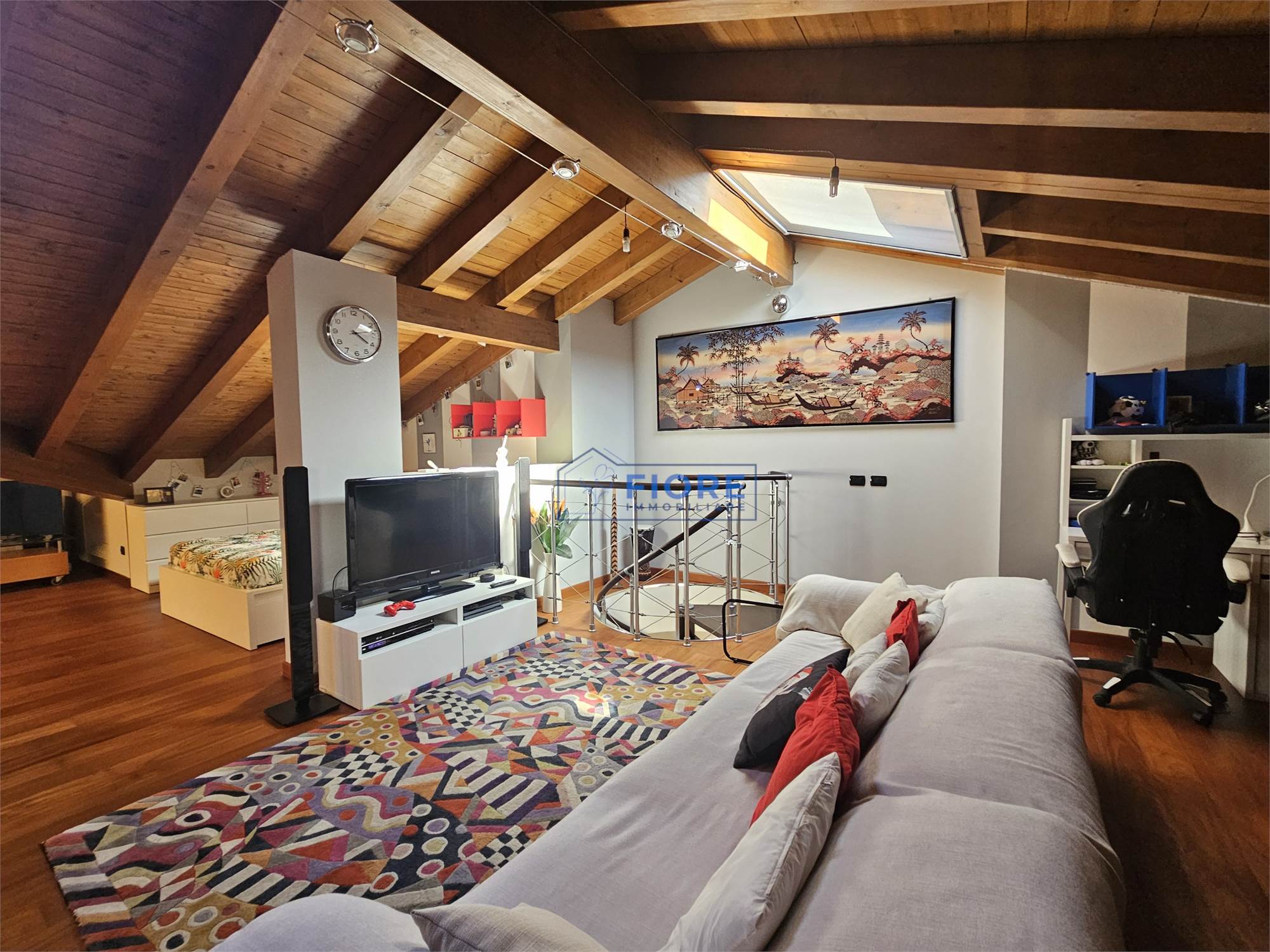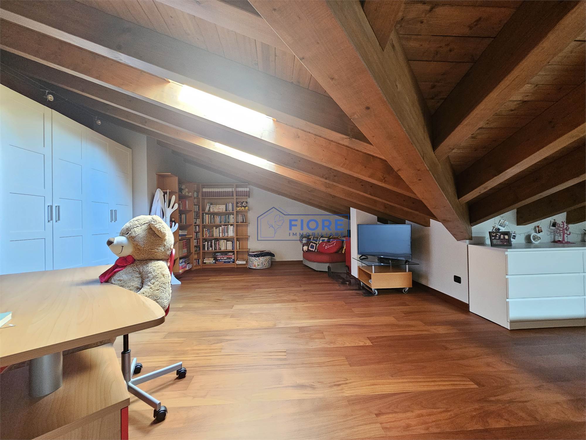 A rendere questa casa ancora più speciale è il piano sottotetto open space con bagno, raggiungibile tramite una caratteristica scala a chiocciola: uno spazio versatile e riservato, da vivere come area relax, studio, sala hobby oppure come ulteriori camere da letto in base alle esigenze della famiglia.